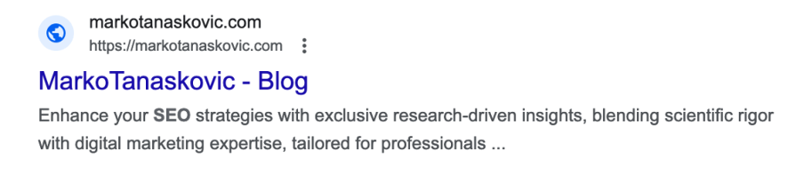 As you can see, the meta description tag for my website is, “Enhance your SEO strategies with exclusive research-driven insights, blending scientific rigor with digital marketing expertise, tailored for professionals…“