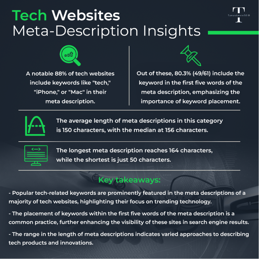 Tech websites should follow similar guidelines to those outlined above. Use keywords at the beginning of your meta descriptions—especially if said keywords relate to Apple products. And ensure your meta tags are between 150 and 156 characters for peak SEO performance.